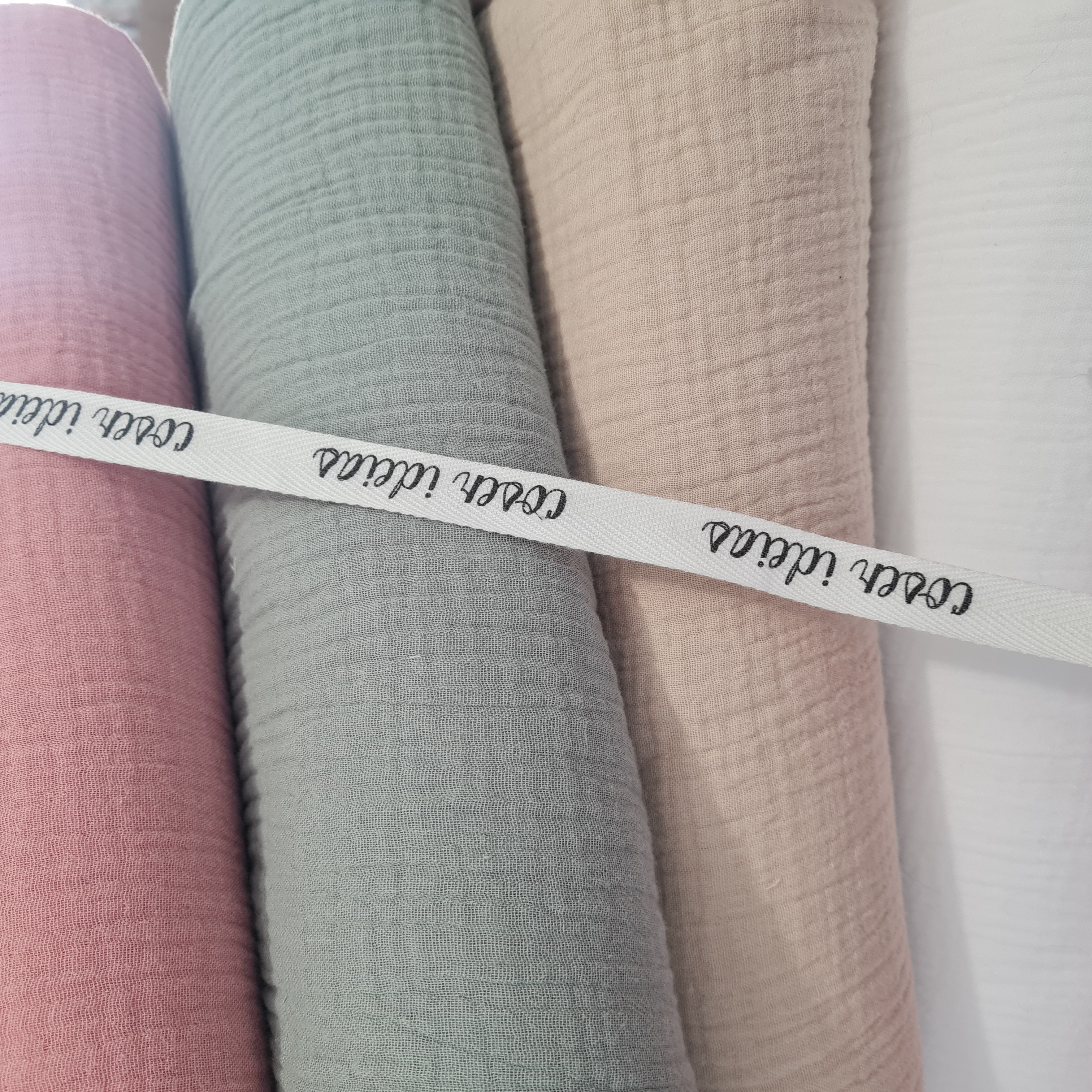 Double gauze (musselina ou tecido de fralda), 100% algodão com 1,3m de largura.
