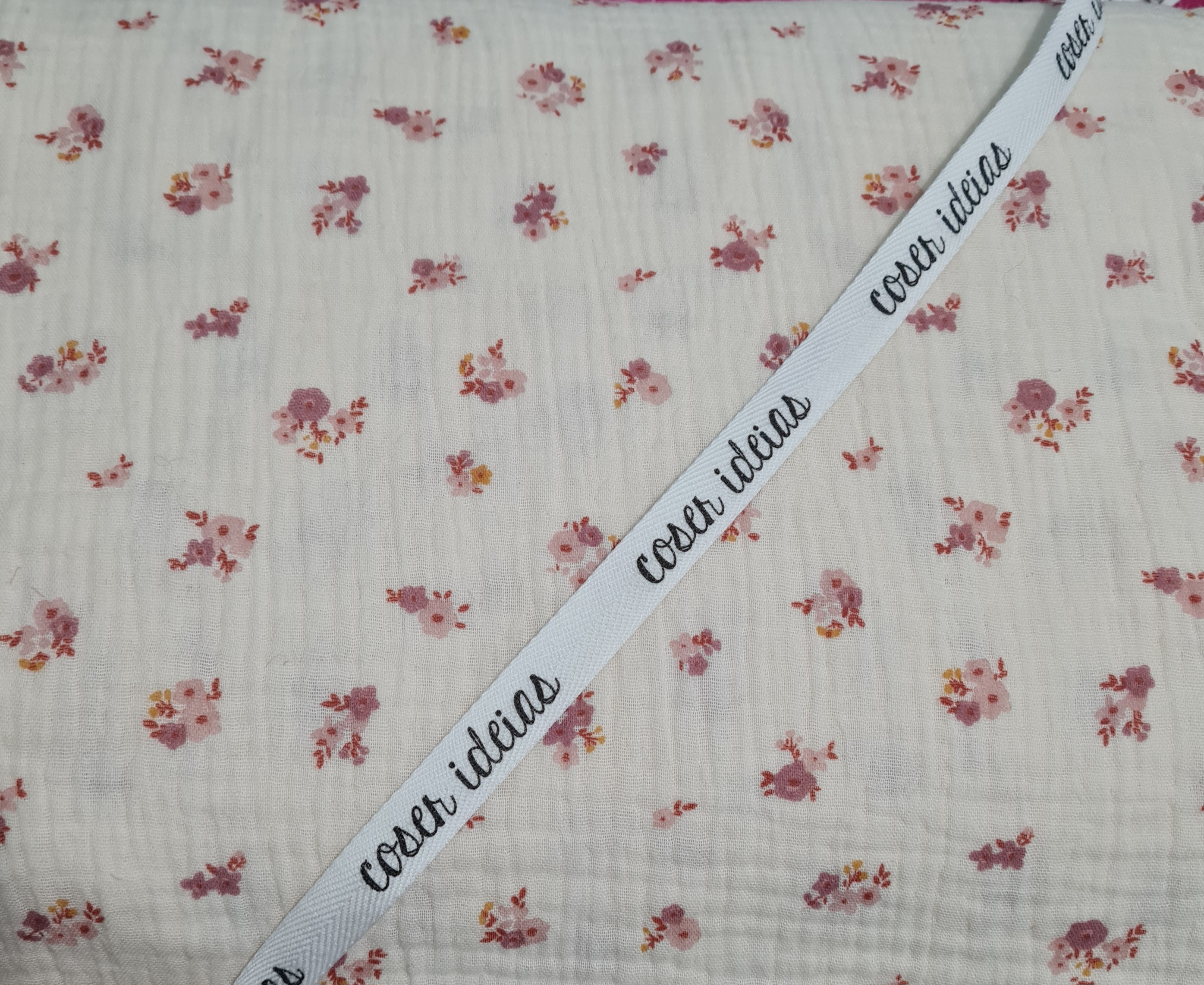 Double gauze (musselina ou tecido de fralda), 100% algodão com 1,3m de largura.